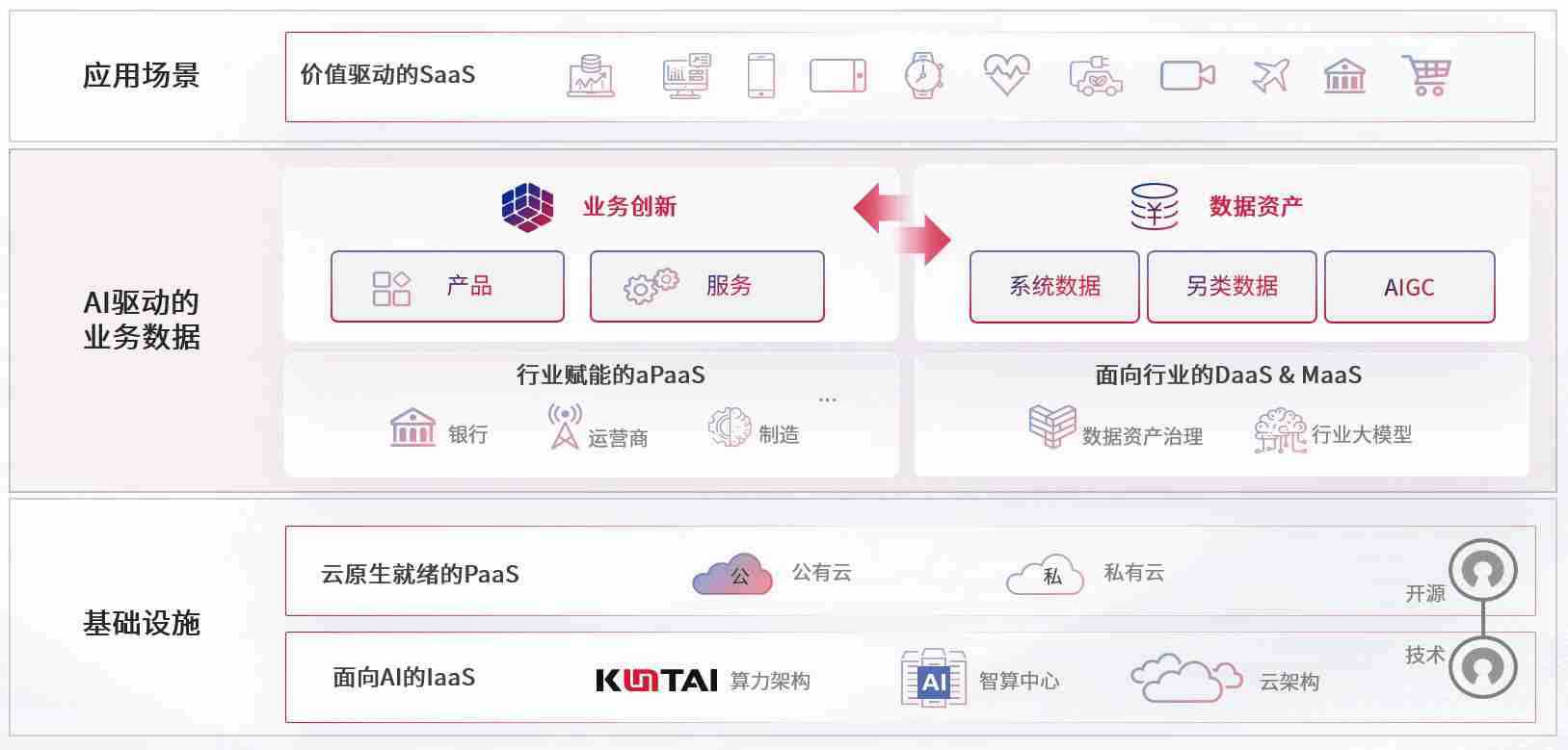 数字时代,,,,围绕企业数字化转型的关键要素,,,NG大舞台数码开创性的提出数云融合战略和技术体系框架,,着力在云原生、、、数字原生、、、、AI原生和信创产业上架构产品和服务能力,,,,为处在不同数字化转型阶段的快消零售、、、、汽车、、、金融、、、医疗、、、政企、、、、教育、、、运营商等行业客户提供泛在的敏捷IT能力和融合的数据驱动能力,,构建跨界融合创新的数字业务场景和新业务模式,,助力企业级客户建立面向未来的核心能力和竞争优势,,,,全面推动社会的数字化、、、、智能化转型升级。。。